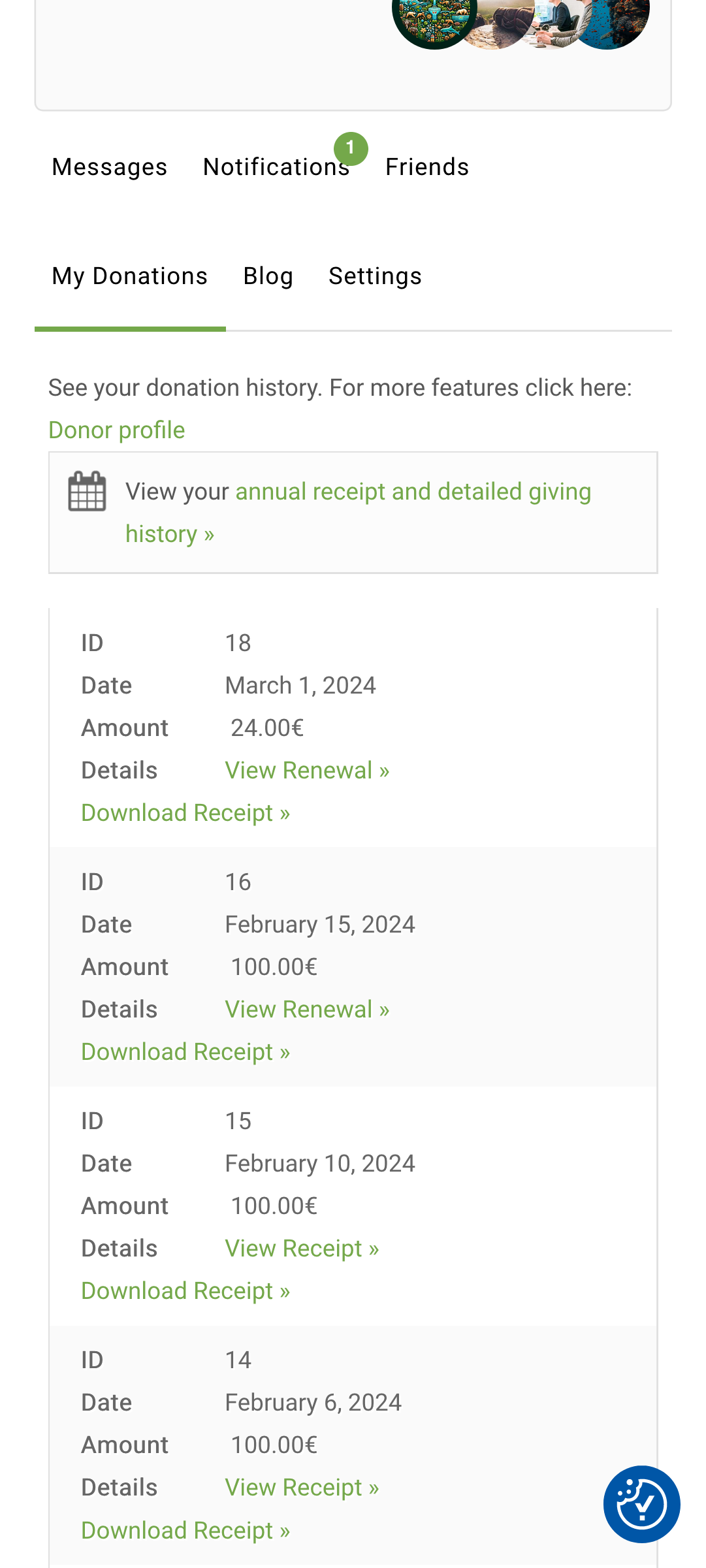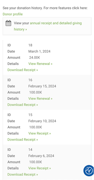Control every contribution you’ve made , download official receipts essential for tax reduction purposes.